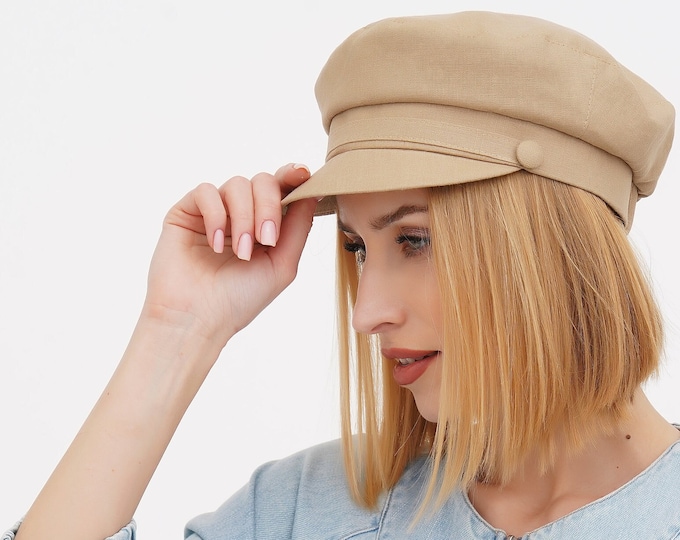 Sand Linen Newsboy Cap – Women’s Summer Breton Hat from Ukraine